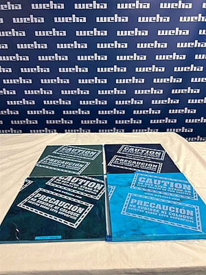 The Weha Blue Countertop Protective film is printed with white letters to make the Caution information stand out.