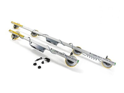 For larger or variable-size slabs, the Sink Hole Saver™ Slider Auto offers all the same features with an adjustable telescoping rail (51”–90”) for maximum versatility and compact storage. Both systems are fully compatible with five optional accessory kits, giving installers a complete protection solution for any application.
