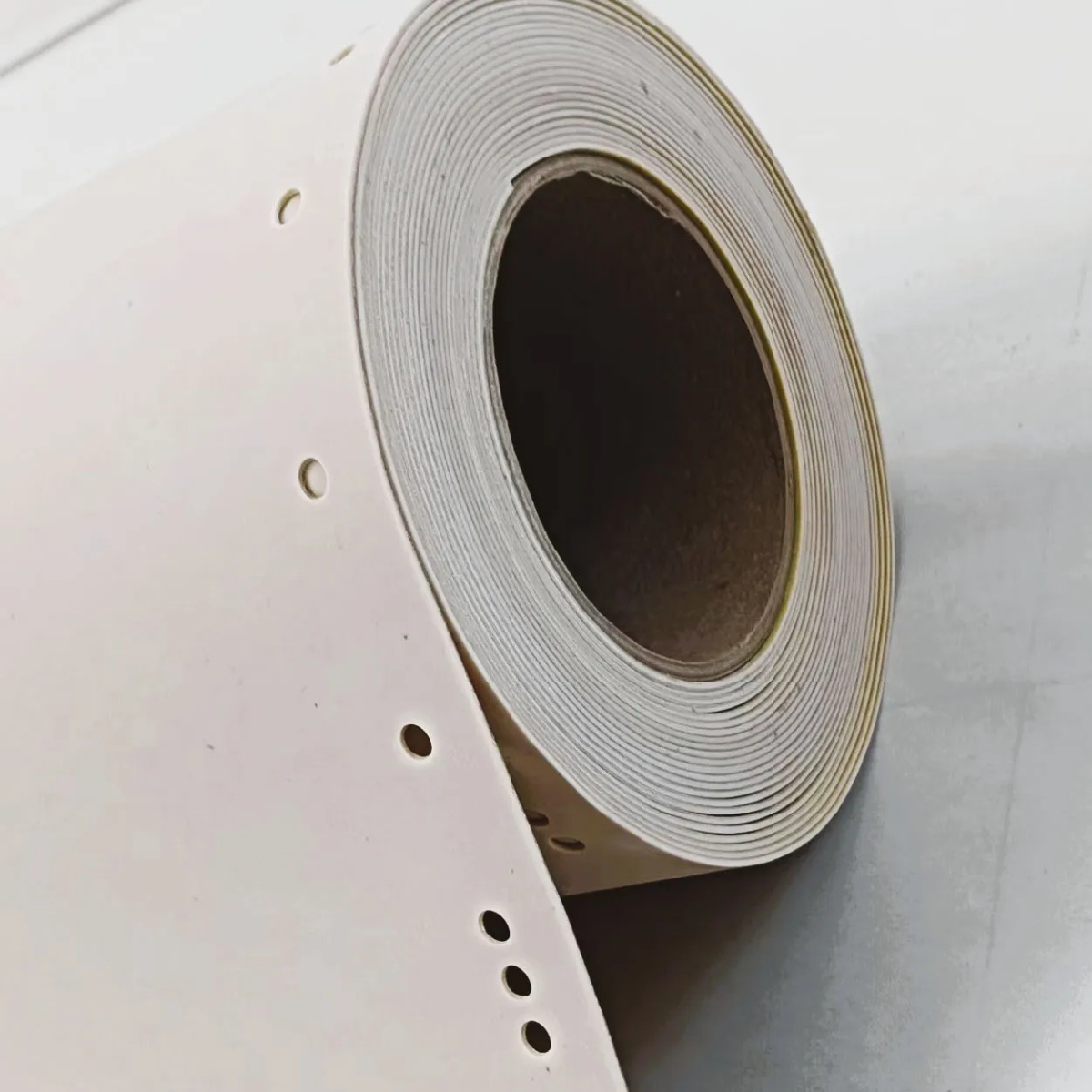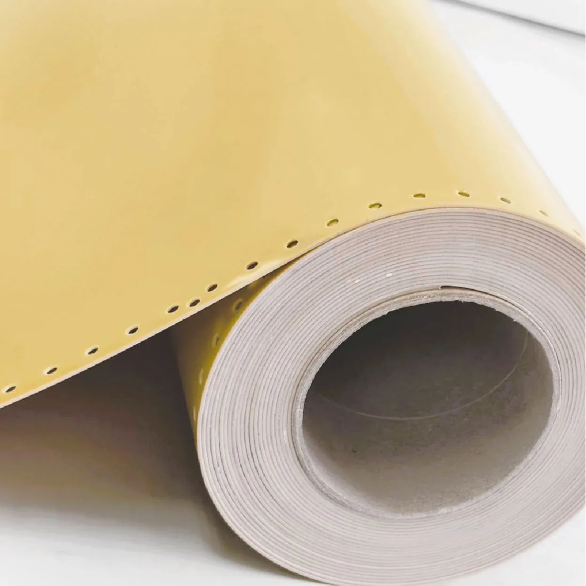 High quality, durable stencil coated with an advanced, medium tack, rubber-based pressure-sensitive adhesive protected by a clear PET liner. Half inch on center hole pattern designed for IBM® sprockets. Tractor-feed holes are punched through liner and rubber. The specially treated polyester liner retains cut designs during transfer from plotter to stone.