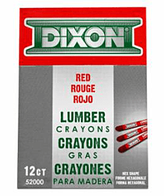 Dixon Lumber Crayons last up to 10 times longer than ordinary molded wax crayons. Fade-proof, water-proof, smear-proof, these crayons won't melt in direct sunlight. They will work on wet (green) lumber or dry wood, metal, concrete and most other surfaces. Each crayon is individually UPC coded and hex shaped (4-1/2 x 1/2 inches) to fit lumber crayon holders. One dozen per box.