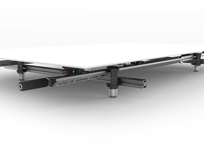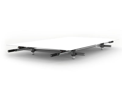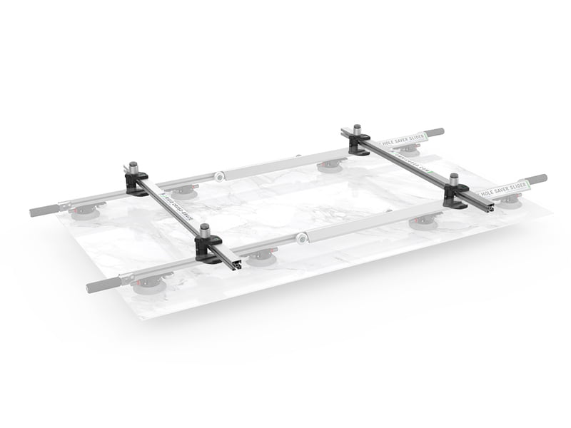 The Omni Cubed Rigid Cross-Brace Kits attach vacuum cup reinforcement rails perpendicular to each other, creating customizable frames that reinforce large, fragile, or uniquely shaped stone pieces. These rigid joints are sturdier than unconnected rails and help minimize twisting or flexing during fabrication and installation. Each clamp features an adjustment knob with integrated resting feet, protecting surfaces and flooring when material is flipped upside-down.
