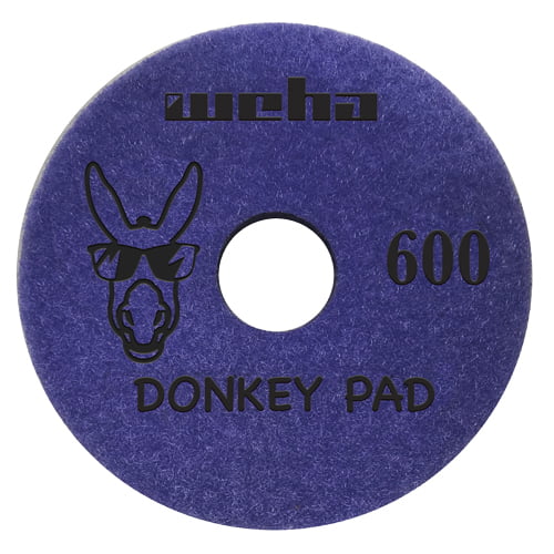The Weha "Donkey" Pads are 4" Velcro backed Quartz Face, surface polishing pads designed specifically to repair the surface of quartz, engineered stone polishing pads.