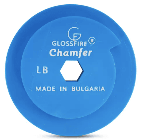 Glossfire-B Chamfer wheel features a long-lasting copper bond with an aggressive diamond matrix. This Chamfer wheel will quickly grind away sharp edges leaving behind a smooth finish.