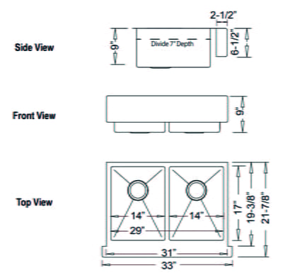 Faux Apron Front Low-Divide Double Equal Bowl - 18g Z Series