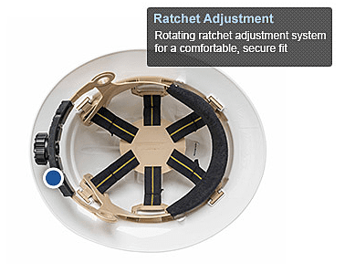 - Rotating ratchet adjustment system provides a custom, comfortable fit.