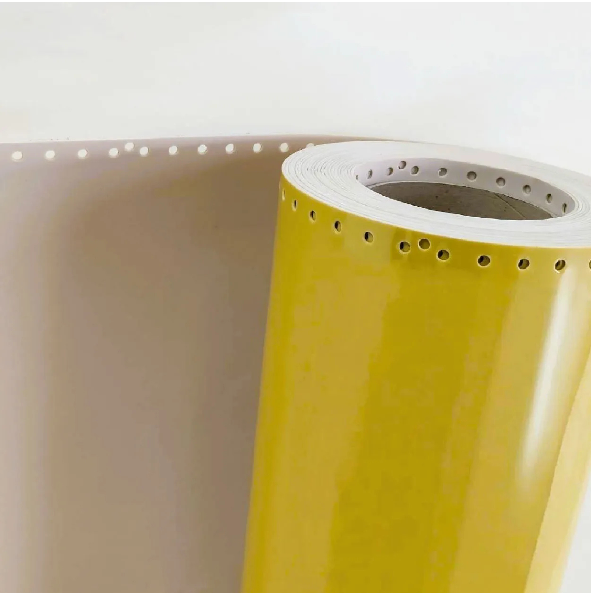 High quality, durable stencil coated with an advanced, medium tack, rubber-based pressure-sensitive adhesive protected by a clear PET liner. Half inch on center hole pattern designed for IBM® sprockets. Tractor-feed holes are punched through liner and rubber. The specially treated polyester liner retains cut designs during transfer from plotter to stone.
