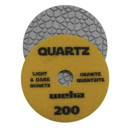 The Weha Quartz diamond polishing pads with the Geo Pattern pads are made with high concentration of diamond into each grit, allowing the pad to create a high gloss finish with the speed that other diamond polishing pads can't achieve.