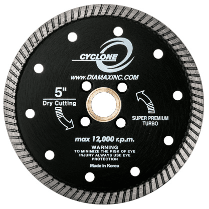 The Cyclone Turbo Blade – 4-1/2" is a professional-grade diamond blade designed for cutting granite and engineered stone with speed and precision. Known as the #1 selling turbo blade in America, it has been laboratory tested to dry cut 36 linear meters of 3cm Absolute Black granite—proving its unmatched durability and cutting efficiency.