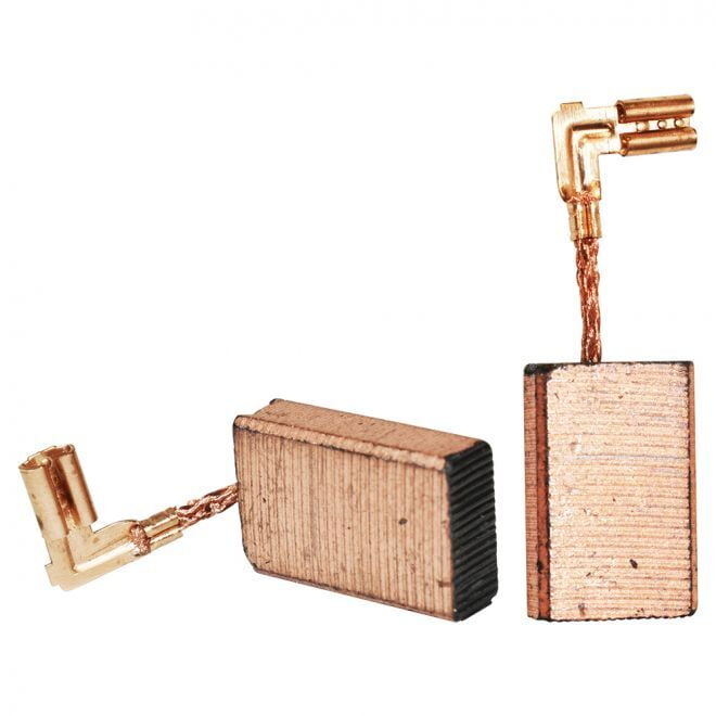 Carbon motor brushes are one of the most commonly replaced power tool components. Because carbon brushes are wear items, meaning that through friction and use they will gradually wear away, they will eventually require replacement. Worn brushes are common causes of intermittent motor function, reduced electric braking, and reduced motor power. A worn out brush will often be worn down near the wire lead and may be cracked, pitted, or burned. When replacing carbon brushes, be sure to also inspect your armature for burns, cracks, or other damage which indicates a larger motor problem.
