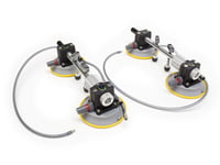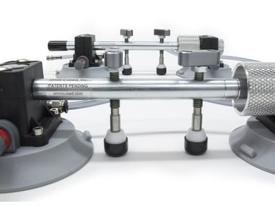 Its non-marking synthetic rubber vacuum cups feature FTS™ (Flexible Triple Seal) technology, locking in vacuum for a strong and reliable hold—even on textured or leathered surfaces. The wide-open design and high-clearance driveshaft keep seams fully accessible, allowing fabricators to apply epoxy, remove excess, and adjust alignment without waiting for adhesives to cure.