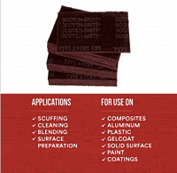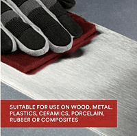 This maroon hand pad uses aluminum oxide abrasive. Aluminum oxide is a popular choice among industrial professionals because of its cut-rate and long life. This mineral is a tough, durable abrasive that self-fractures to expose fresh cutting edges in use, whereas traditional abrasives, such as garnet, quickly wear down with use. Due to its high cut-rate, hardness, strength, and low heat retention, aluminum oxide mineral is widely used in grinding applications in addition to sanding and finishing use. Aluminum oxide is suitable on a wide variety of substrates in both woodworking and metalworking, including ferrous alloys.