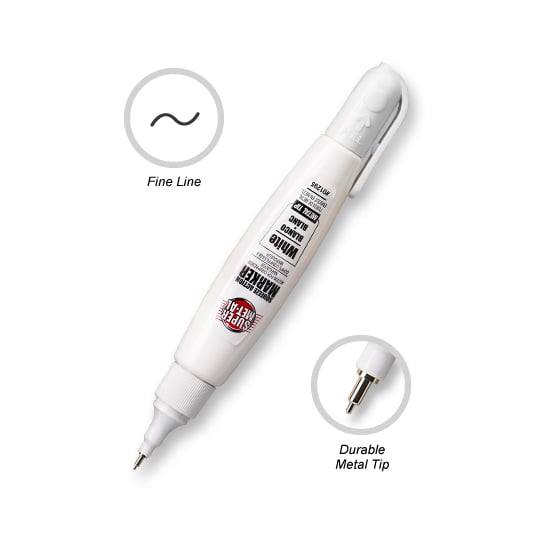 This marker contains an oil-based paint that is permanent, dries quickly and is water, weather and fade resistant.  Squeeze Action Oil-Based Metal Tip Paint Markers also has a marking range of -50°F to 150°F.  The stainless steel, spring loaded metal tip makes thin, defined marks and lines and works by simply squeezing the body of the tube and pressing the tip onto the surface of what you wish to mark.  This is a handy tool to use in welding shops, auto repair shops, salvage yards, machine shops, tool shops, quality control, marking/coding, electrical coding, etc.