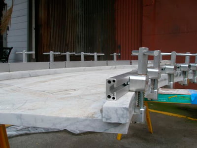 The Lam-Clamp™ has revolutionized countertop edge laminations by exceeding traditional methods in efficiency, seam quality, and durability. The Lam-Clamp's patented design features hidden clamp threads, which protects them from epoxy contamination, so they outlast any other clamps on the market. Available in six sizes for truly customizable application. The shorter lengths wrap easily around curved edges, while the longer lengths are ideal for speed and efficiency.
