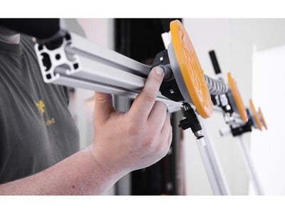 The Omni Cubed Manual Vacuum Cup β 6" Rail Mount delivers a secure, adjustable gripping solution for stone panels during fabrication, transport, or installation. Designed to attach easily to Omni Cubed reinforcement rails, this 6" vacuum cup ensures reliable hold on granite, quartz, marble, porcelain, and engineered stone, allowing installers to safely lift, move, or position slabs with greater precision and control. Lightweight yet durable, itβs an essential tool for professional stone countertop and panel installations.