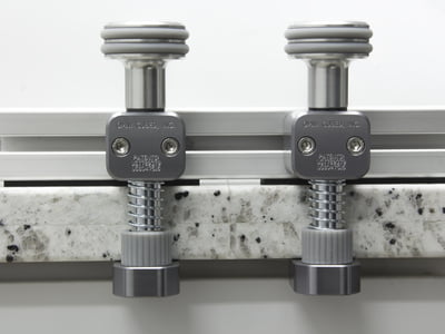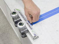 The Edge Seamer is your go-to solution for leveling and stabilizing seams—especially around sink rails and countertop cutouts. Designed to eliminate twisting and uneven joints, this tool ensures clean, consistent seams along material edges. With a wide clamping range, it accommodates most standard countertop edges. Rubber bumpers protect polished surfaces, while integrated rail pads provide enough flexibility for fine, independent adjustments on each side of the seam—compensating for the smallest inconsistencies in material height.
