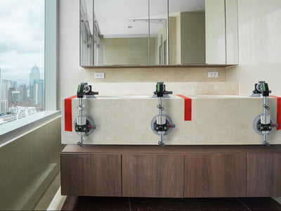 Unlike other seamers, the 90° Stealth Seamer Manual can be inverted to handle inside corners, giving fabricators maximum versatility. Its non-marking synthetic rubber vacuum cups feature FTS™ triple-seal technology, providing a powerful, reliable hold even on textured and leathered stone surfaces.