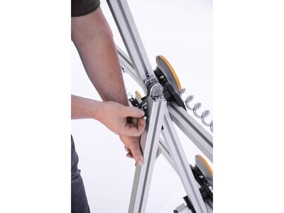 The S3 | Slim Slab Saver™ is a versatile, fully customizable rigid frame and reinforcement system that reduces strain and risk of injury while handling large format slabs and other fragile materials. Ideal for LFTM, gauged or thin porcelain slabs, and sintered stone, it prevents breakage during transport and installation. The combination of solid machined clamps and extruded aluminum rails minimizes flexing and twisting while maintaining lightweight strength and extreme rigidity.