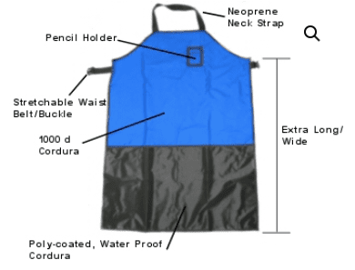 BULLET PROOF™ fabricator aprons are lighter, more durable, and safer than any other apron on the market. With the neoprene neck strap and lightweight yet ultra-tough Cordura, you won’t even know you have it on. It is extra long and wide to keep your legs drier, and it buckles behind you to keep you safe.