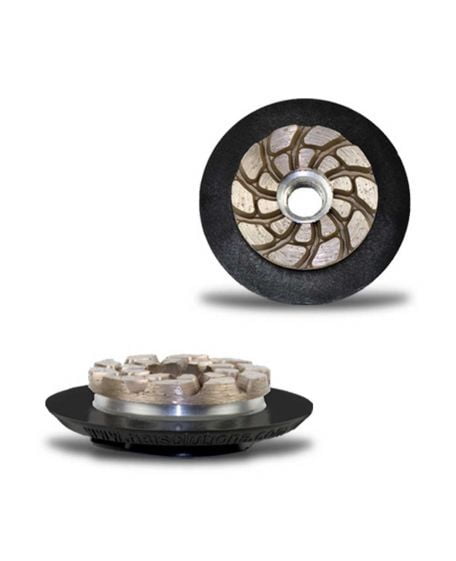 The 2" Cup Wheel is used for heavy stock removal. It can also be used with the Seam Phantom to grind back edges and clean up laminations on natural stone. This cup wheel can be use with Electric or Air Seam Phantom to create the undercut or back bevel.