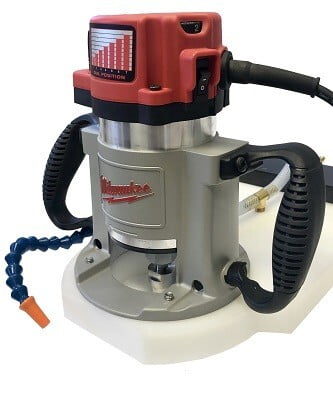 Lightweight, Maximus Variable Speed Stone Edge Router with 3.5 HP Milwaukee® Motor is Designed to Make Fast & Efficient Profiles on 2cm, 3cm, and 4cm Granite, Marble & Natural Stone Slabs. Equipped with Teflon Hydra-Float Base, Air Hose & Brass Fittings.