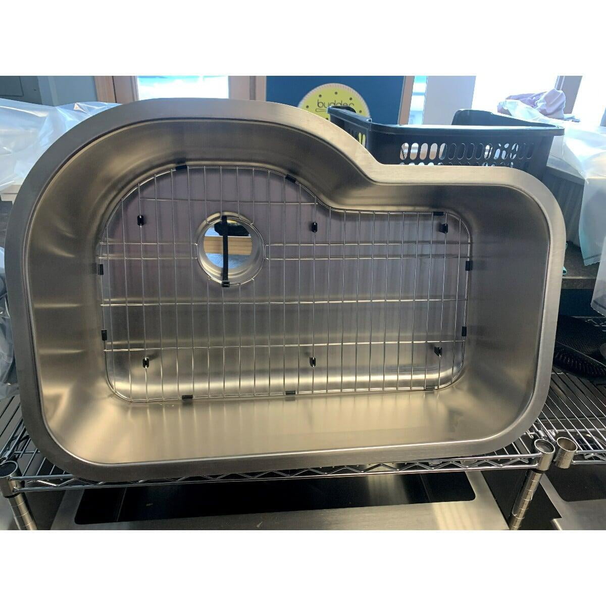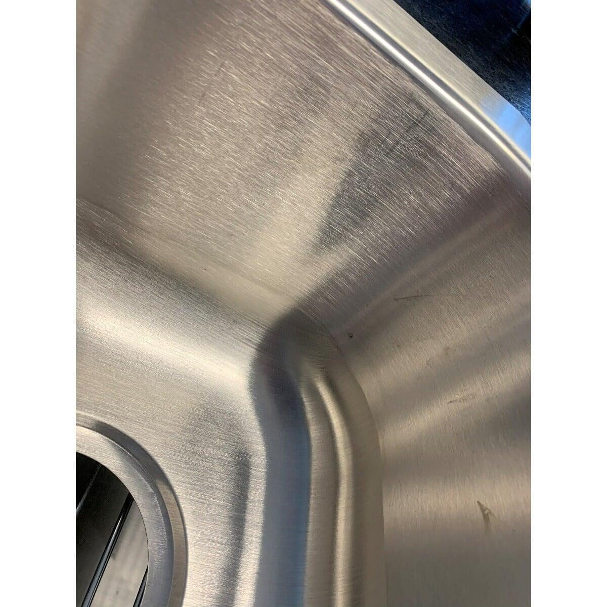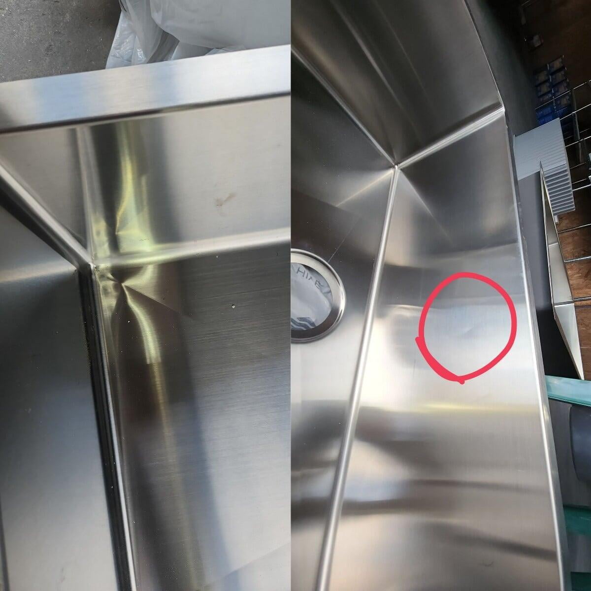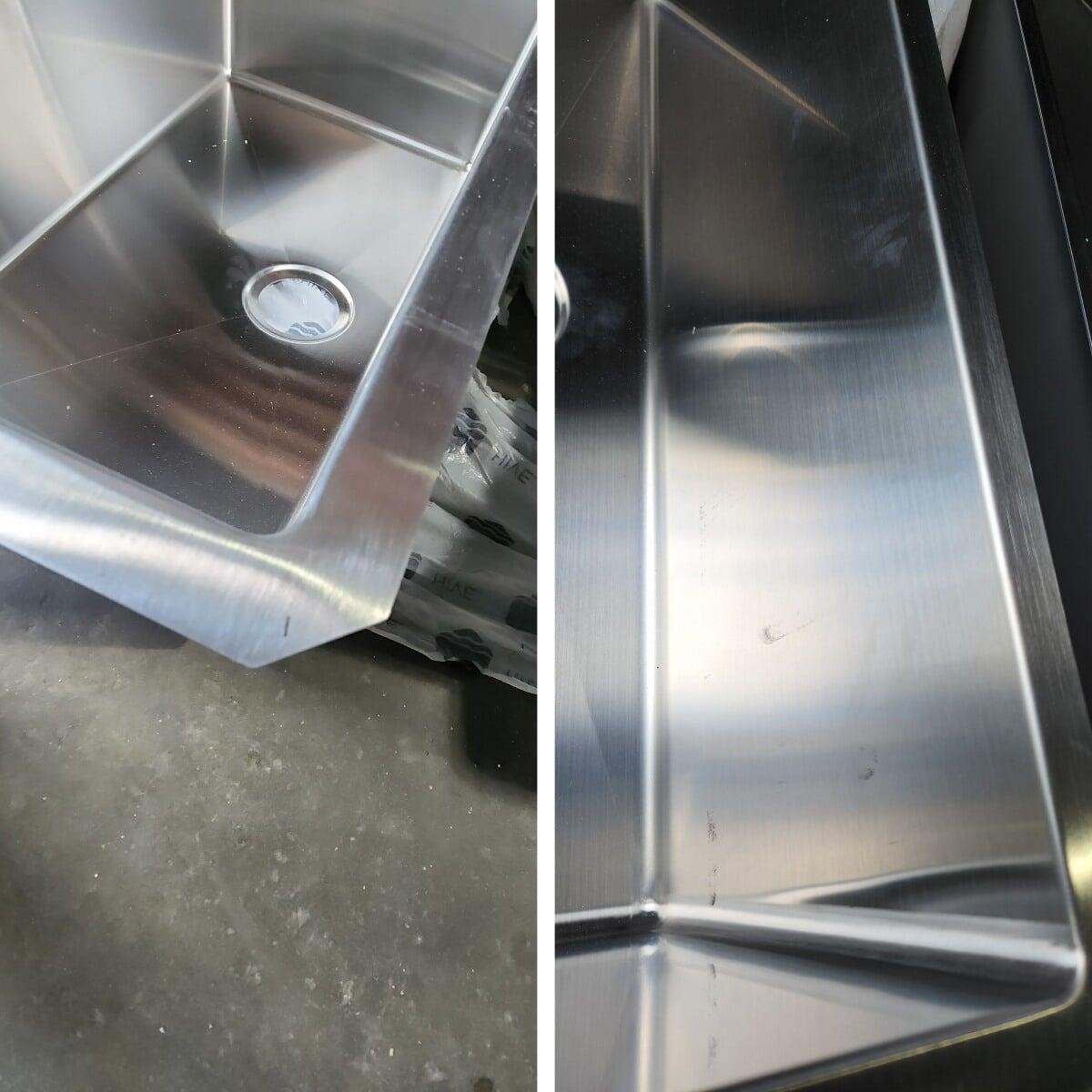 This item has been discounted because it is damaged. This item has scratches along the bottom of the sink. A FREE grid is included to help hide scratches. See photo for reference.