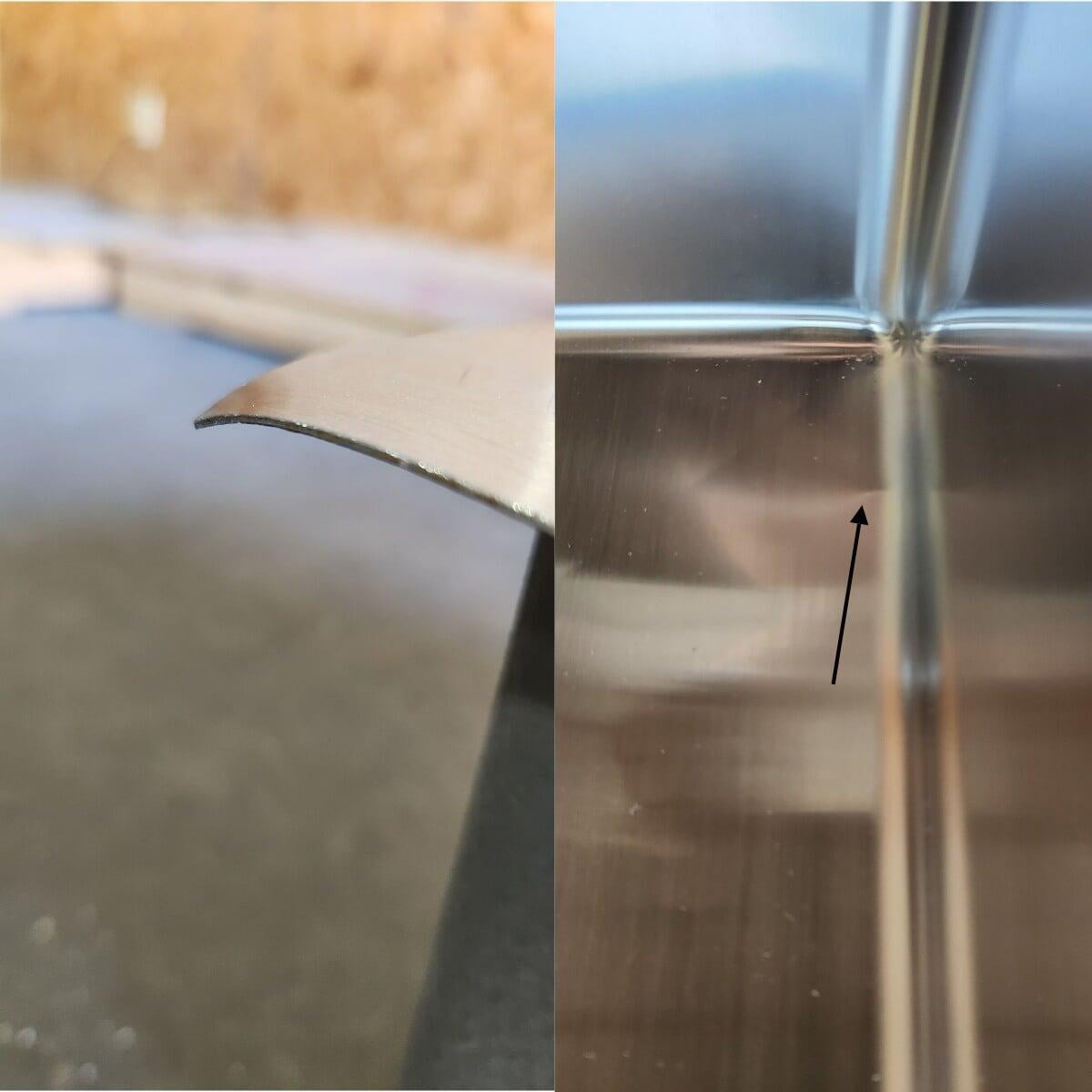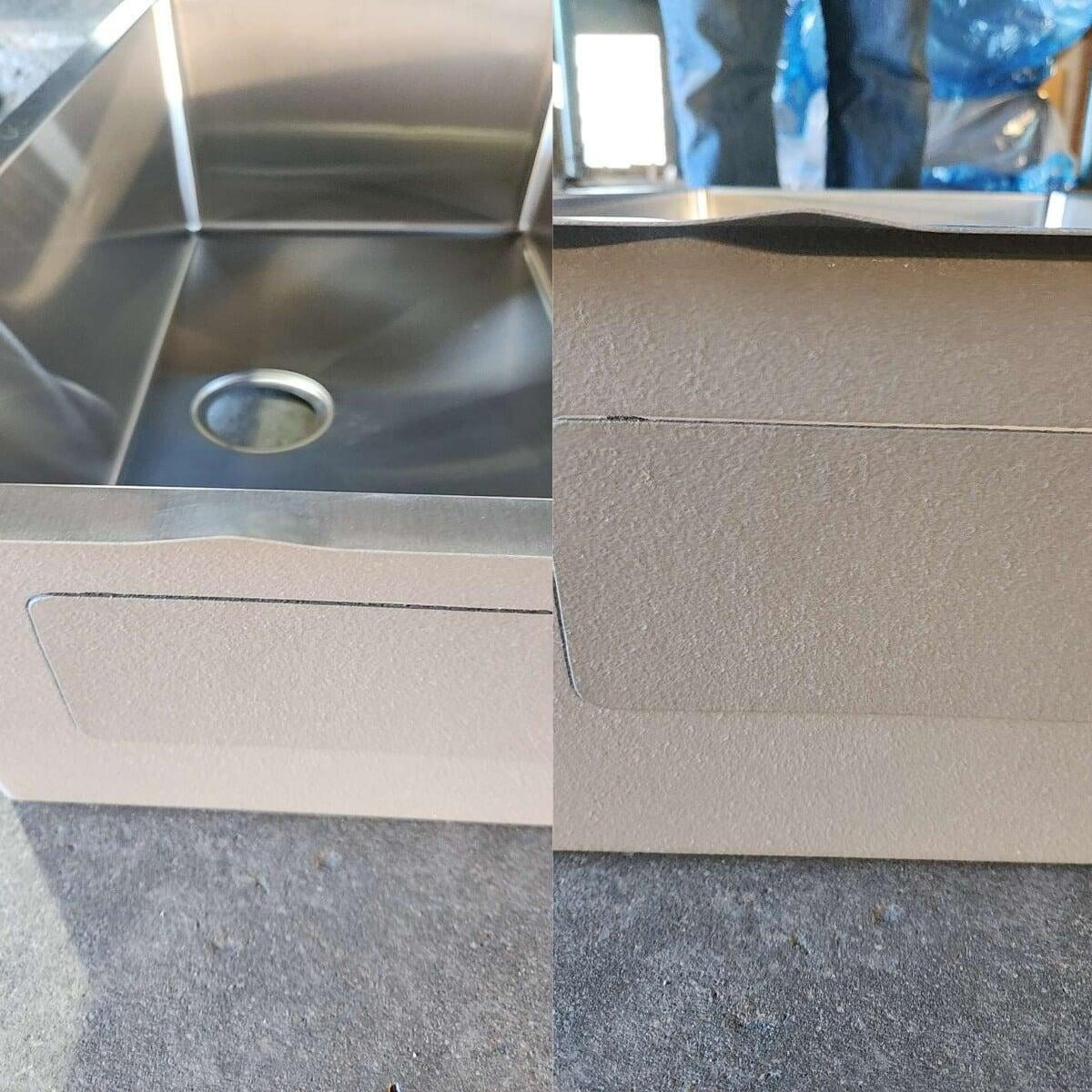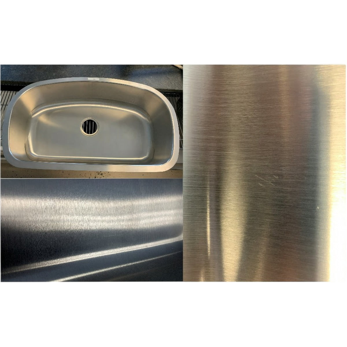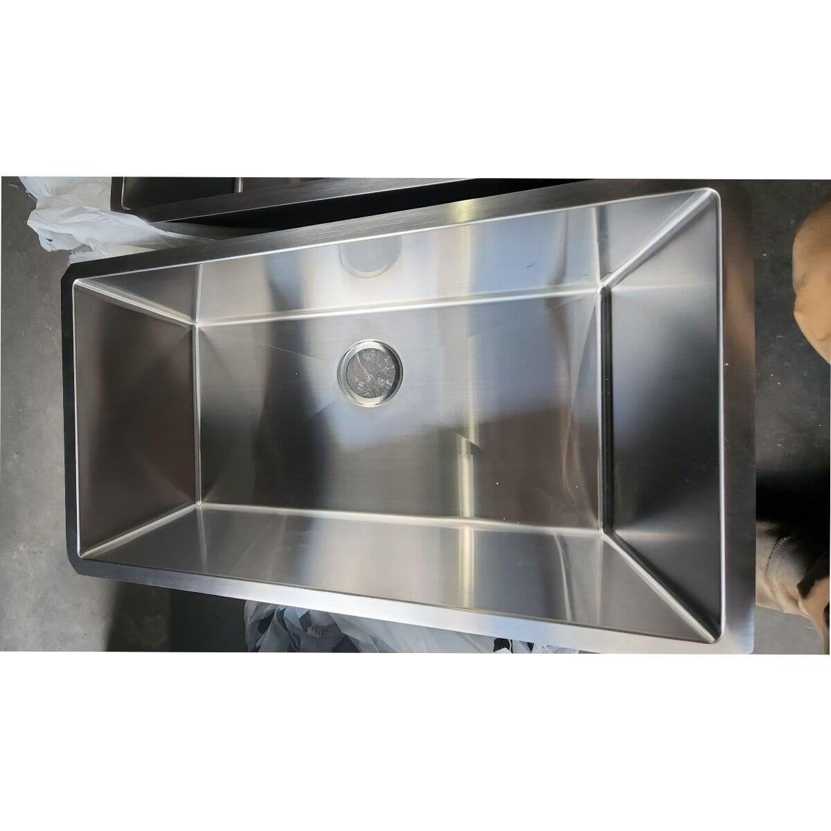 This item has been discounted because it is damaged. This item has scratches along the bottom of the sink. A FREE grid is included to help hide scratches. See photo for reference.