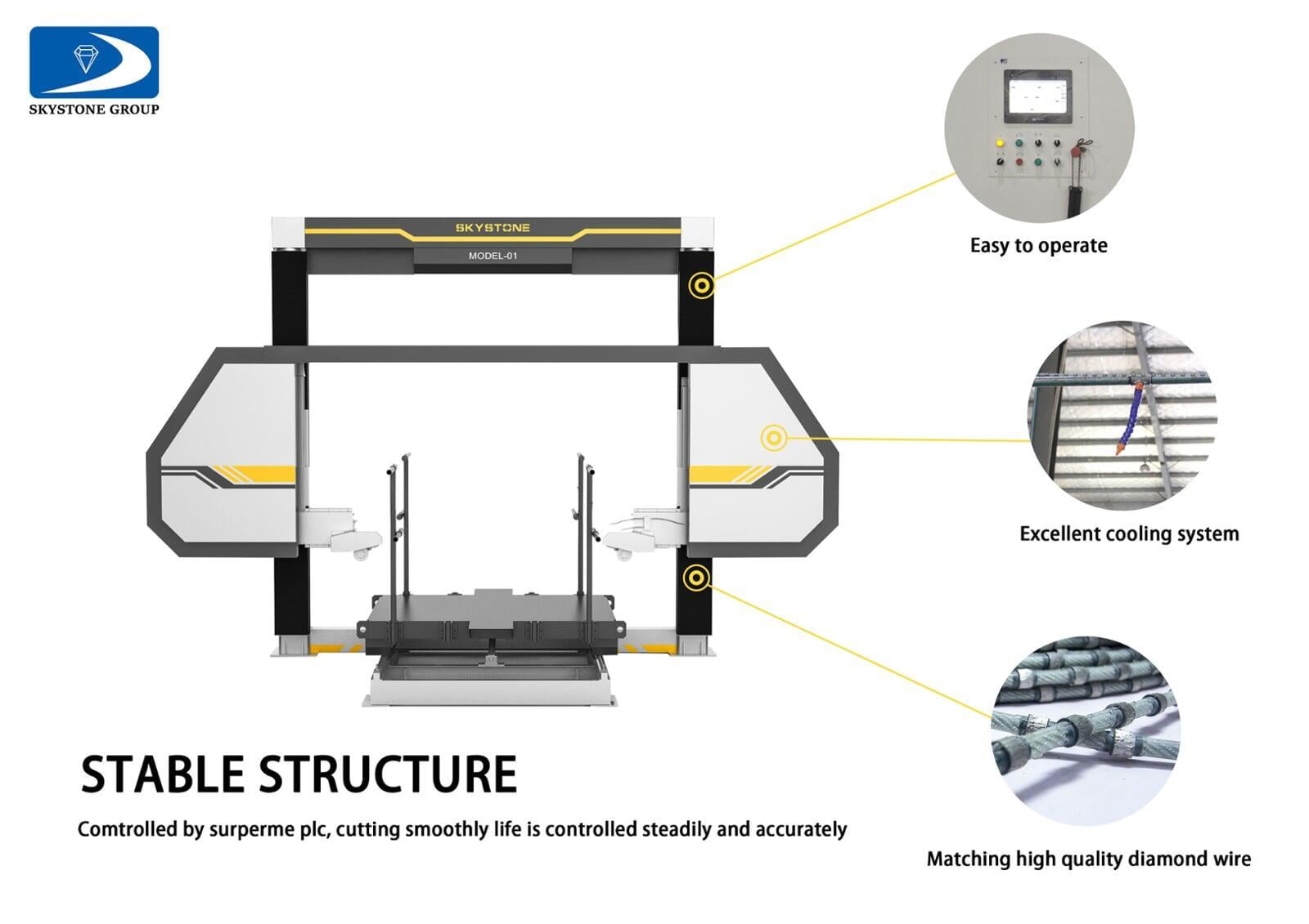 This machine was designed for dressing different sizes and hardness blocks. It owns advantages of high efficiency, easy operation, low cutting cost and pollution. The system is controlled by supreme PLC, making cutting and running more smooth and guarantee the high cutting efficiency. Linear speed, cutting current, cutting position, working time, and tension could be real time reported.